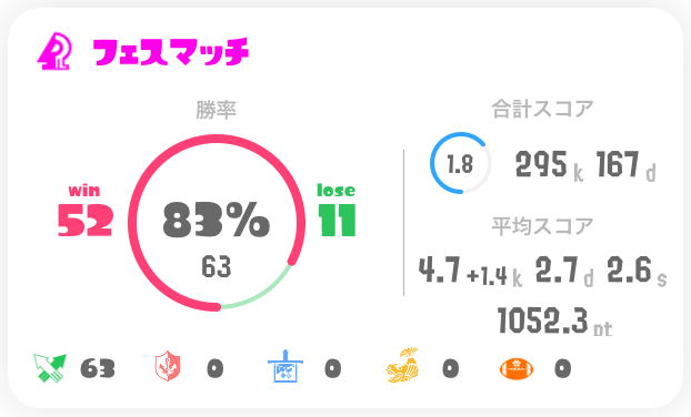 フェス100傑を目指している人は『塗りポイント』だけではなく『キル数』も稼げるように頑張ってみて下さい。