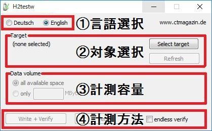 ダウンロード場所:http://www.heise.de/download/h2testw.html