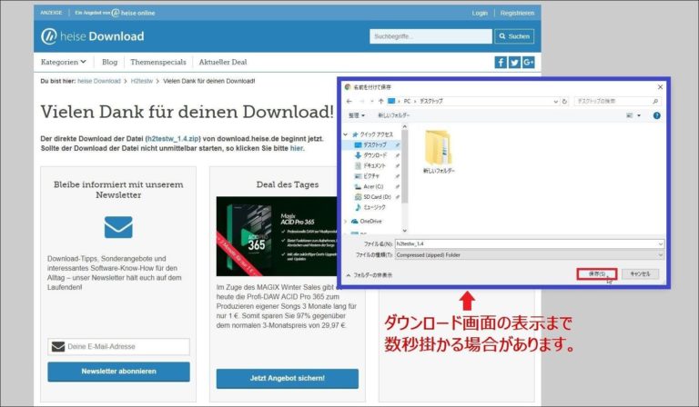 そうすると次の画面が表示されるんですけど、少しだけ時間が経ってからダウンロード画面が表示される場合もあります。