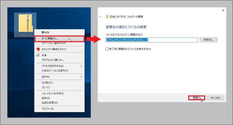 手順は簡単で、ダウンロードしたフォルダーを右クリックして「すべて展開」と言う項目をクリックするだけです。